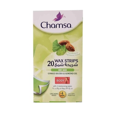 Chamsa Body Wax Strips Hypoallergenic Dry Skin Ginkgo Biloba And Almond Oil 20 Strips