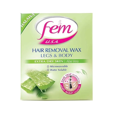 Fem Hair Removal Wax Extra Dry Skin Legs & Body Aloe Vera 450g