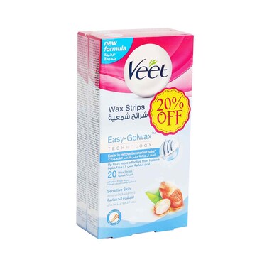 Veet Easy-Gel Wax Strips Body & Legs for Sensitive Skin, 2x20s @20% Off