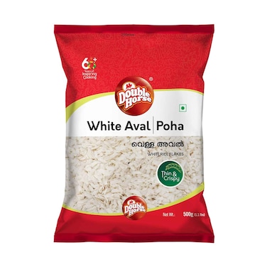 Double Horse White Aval Poha Rice Flakes Thin & Crispy 500g