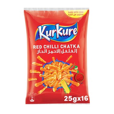 Kurkure Red Chili Chatka Puff Chips 25gx16