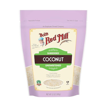 - Bob's Red Mill Shredded Coconut is unsweetened and unsulfured, making it ideal for baked goods, granola and more. It’s also a good source of fiber! Rich in flavor with no preservatives, this coconut is perfect for traditional favorites like coconut macaroons and carrot cake muffins.