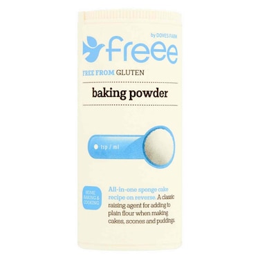 - Our baking powder is a classic raising agent for adding to plain flours when making cakes, scones and puddings. Each tube contains 13g of baking powder, enough to make 26 cinnamon cakes or a variety of other cakes.