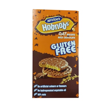 - Finished with a layer of mcvitie's signature silky smooth, milk chocolate. Enjoy your favourite nobbly chocolate hobnobs, packed full of oats but without the gluten.