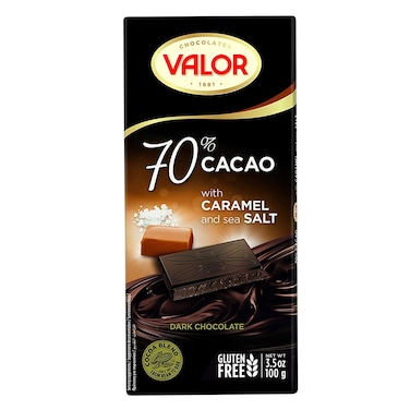 Valor Chocolate Bar 70% Cocoa Caramel And Sea Salt 100g