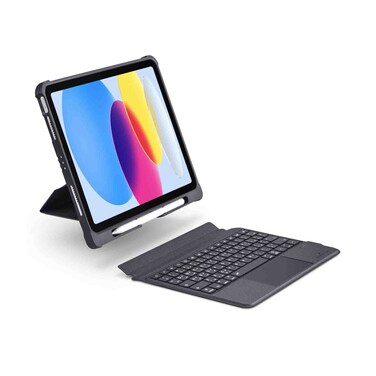 2-in-1 Functionality: Combines an iPad case and a wireless Bluetooth keyboard. Dual Language Support: Arabic and English keyboard layout. Integrated Trackpad: Allows you to conveniently navigate your iPad. Magnetic Keyboard Attachment: The keyboard securely attaches to the case magnetically. Built-in Stand: The case features a stand for easy installation of the iPad and comfortable use of the keyboard and trackpad. User-Friendly: Simply turn it on and connect it to your iPad via Bluetooth settings. Compatible with iPad 10: Specifically designed for the 10.9-inch iPad