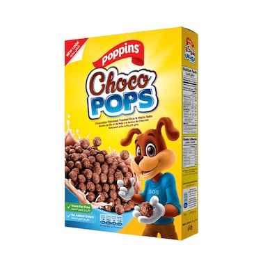 Poppins Choco Pops Chocolate Flavored Toasted Rice & Maize Balls Cereals 500gr