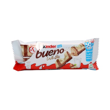 • Bueno White Chocolate Covered Wafer with Smooth Milky and Hazelnut Filling for you to enjoy. two pieces individually wrapped.