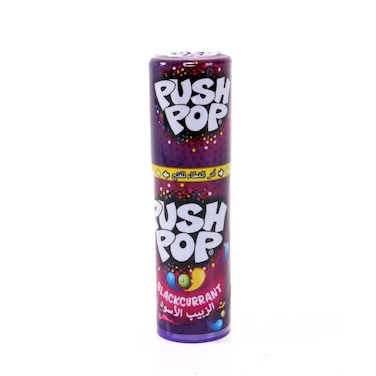 • Push pop presents Push Pop candy. The candy is made with blue raspberry flavor. The ingredients of the candy include Fat Saturated, Fat, Sodium, Carbohydrates, Sugars, Proteins. The quantity of the push pop candy is 15 grams.