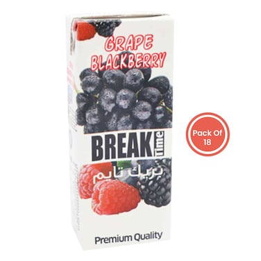 Raw'A Break Time Juice Drink Grape And Black Berry 200ml x Pack of 18