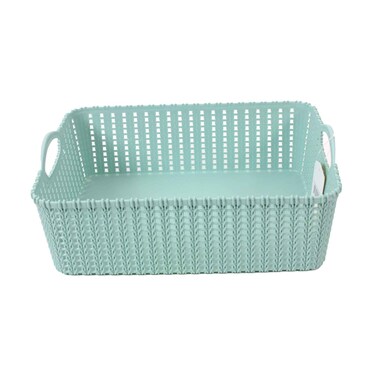 Plastic Rattan Woven Basket Medium 33x27.5x12 - Mint Green