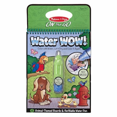 - No mess painting for kids. This exciting paint with water coloring book includes four reusable pages and a refillable water pen. Simply use the pen to color in each scene details and vibrant color appear with every stroke. Then let the page dry to erase the pictures and fill it in again and again. This animal themed book includes four scenes to color and a search and find activity for each scene. The chunky sized water pen is easy for kids to hold and stores neatly right in the front cover, so water wow books make ideal travel activity books and travel toys for kids.