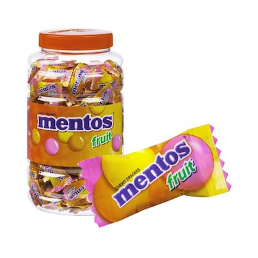 • •Mentos chewy fruity candies, a rich and flavorful chew