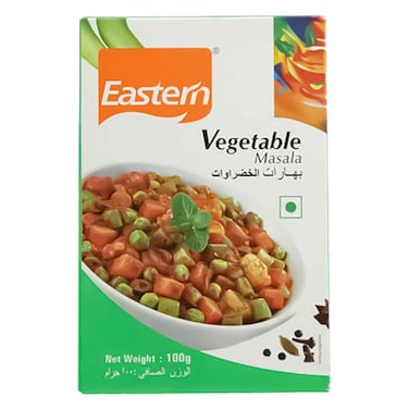 - Eastern vegetable masala is a great blend of excellence spices and condiments to make savory, nourishing vegetable curries. It takes the reliable Indian flavor right to your kitchen. It is 100 percent vegetarian and has dietary fibre which assists digestion and satisfies hunger prepared using hand picked ingredients.