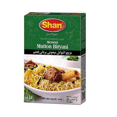 - The Shan Spice Mix for Memoni Mutton Biryani provides you with a relishing spicy taste. It enhances your Biryani's flavor and makes your dish stand out in any social gathering.