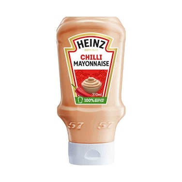 • Heinz has applied its expertise to develop a creamy Chilli mayonnaise to go with everyday foods like salads, sandwiches, chips or finger foods. With the finest quality ingredients and 100% pure vegetable oil in its rich, smooth, and creamy tasting mayonnaise, Heinz Chilli Mayonnaise is a delicious tasting condiment with spicy Chilli. The bold, savoury taste of Heinz Chilli Mayonnaise makes it an ideal dip, sauce or can be simply spread on bread, pasta or sandwiches. It is a perfect accompanimant to chicken, kebab or finger foods for that extra burst of flavour.