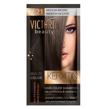 Victoria Beauty Hair Color Shampoo Keratin Therapy V21 Medium Brown 40ml