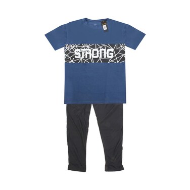 Mens Pajama Set- Blue Medium Blue Shirt & Black Pyjama