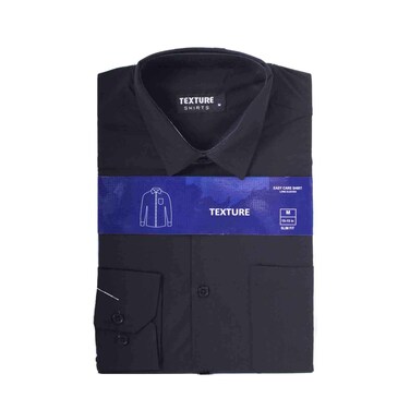 Texture Mens Shirt Long Sleeved Slim Fit Meduim Black