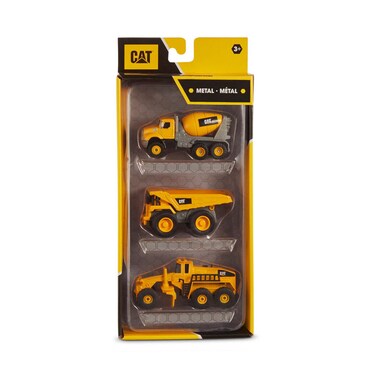 Cat metal 3 pack are ready to roll. These high quality vehicles are built to live up to the cat standards for quality product and will stand the test of time. The vehicles are push-powered and like the real cat machines, feature moving articulated buckets, booms, drums, and rollers