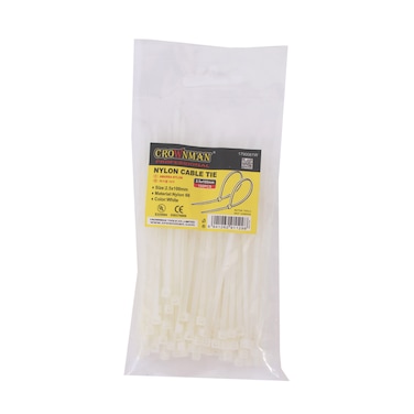 Crownman Nylon Cable Tie 2.5x100MM 100 Pieces Pack - White