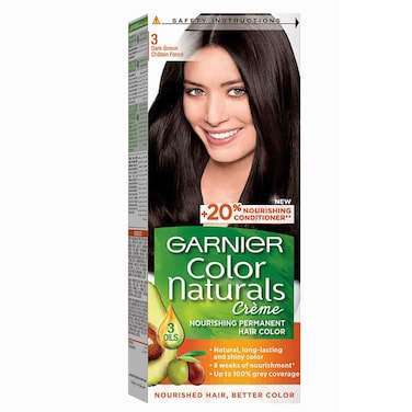 - Garnier Color Naturals is a permanent nourishing hair colourant with up to 100% grey hair coverage. Our after colour hair conditioner is enriched with avocado oil, olive oil and shea butter, it nourishes hair even after colouring. With Garnier Color Naturals, nourished hair means better colour. Choosing your perfect shade:Hair colour result will vary depending on your natural colour. If you are deciding between 2 shades, we recommend to always choose the lightest.