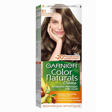 - Garnier Color Naturals is a permanent nourishing hair colourant with up to 100% grey hair coverage. Our after colour hair conditioner is enriched with avocado oil, olive oil and shea butter, it nourishes hair even after colouring. With Garnier Color Naturals, nourished hair means better colour. Choosing your perfect shade: Hair colour result will vary depending on your natural colour. If you are deciding between 2 shades, we recommend to always choose the lightest.