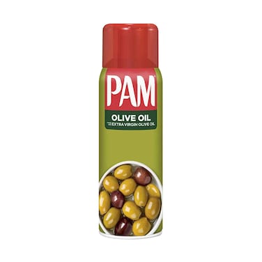 - Made with extra virgin olive oil, this cooking spray offers a no-fuss alternative to traditional butter and oil, perfect for skillets and cookie sheets. PAM Nonstick Olive Oil Cooking Spray has 0 calories per serving and is great for fat free cooking.