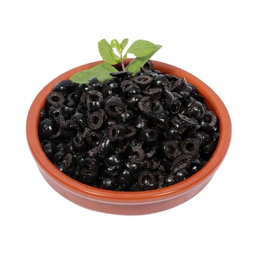 Black Sliced Spanish Olives, good source of anti-oxidants, reduces risk of heart attack, improves cardio-vascular system, reduces bad cholesterol.