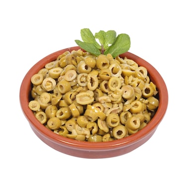 - Green Spanish Olives Sliced, good source of anti-oxidants and iron. Reduces risk of cancer, stroke, and heart attack. Improves cardio-vascular system. Reduces bad cholesterol. Improve skin, hair and eye health.