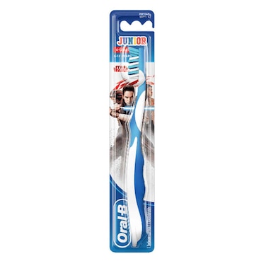 • Oral B Junior Toothbrush Star Wars 6 12 Years is a toothbrush designed to allow children to brush their teeth effectively, on their own. Specially dedicated to children aged 6 to 12 years old, they have soft bristles to enable effective brushing teeth, as well as the first permanent teeth. Its CrissCross bristles effectively eliminate dental plaque. Its comfortable and non slip brush handle is suitable for children's hands. Playful, the toothbrush is an image of the movies Star Wars.