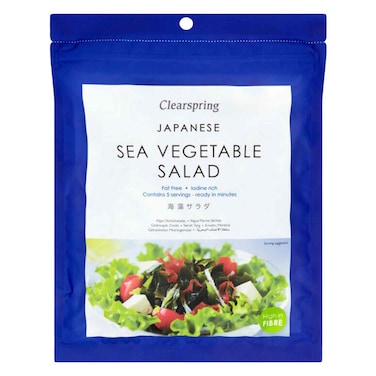 • Clearspring Japanese Sea Vegetable Salad is unbleached and undyed, and when soaked and served with a vinaigrette dressing it makes an ideal side salad. Simply soak, season and serve alone or with garden salad vegetables. Each 25g pack contains 5 servings and the salad increases in volume considerably when soaked.