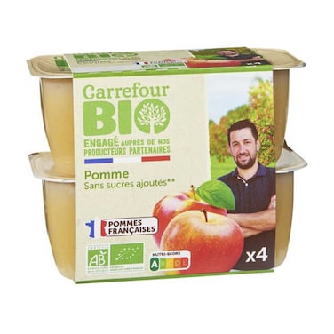 Carrefour Bio Organic Apple sauce No Added Sugar 100g x4