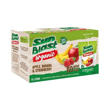 Sun Blast Organic Apple, Banana & Strawberry 100% Juice 200mlx10's