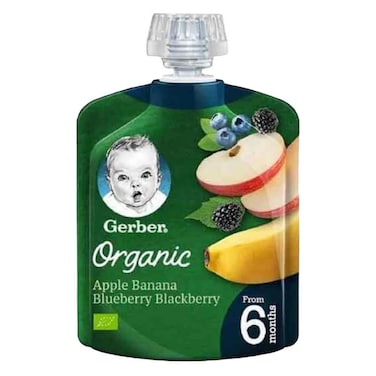 Gerber Organic Baby Puree Apple, Banana, Blueberry & Blackberry 6 Month+, 90g