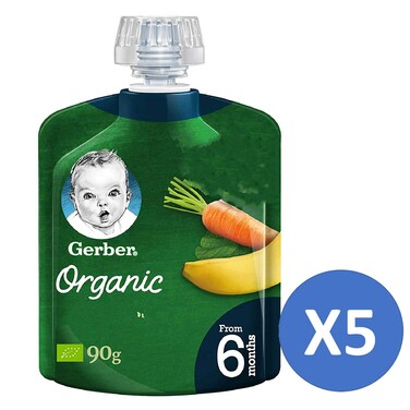 Gerber Organic Baby Puree Banana & Carrot 90gx5