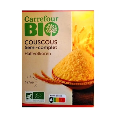 - The Carrefour Bio Couscous is made using high-quality ingredients. It has 2g fat, 71g carbohydrates, 5g dietary fiber, and 11g protein.