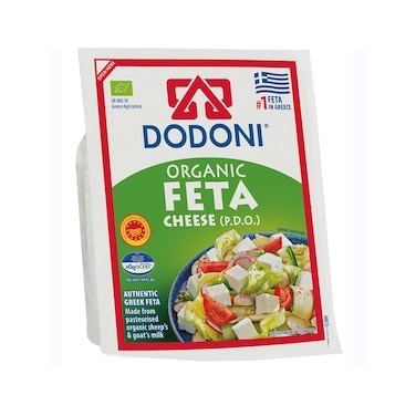 - Premium authentic Greek feta cheese made from organic pasteurized sheep's and goat's milk .