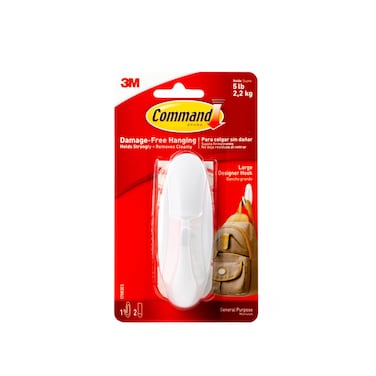 3M Command 17083ES Designer Hook With Strips, Large, Holds 2.2 Kg. Each Hook, 1 Hook And 2 Strips/Pack