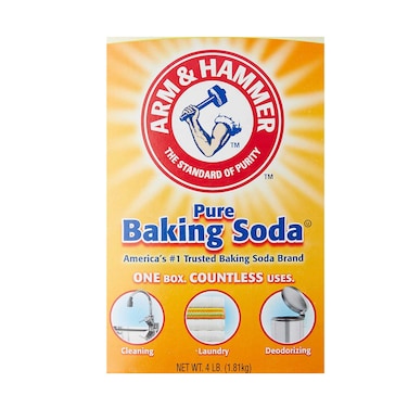 - This Arm and Hammer Pure Baking Soda 4 lb box is a convenient size to use for baking, and it has practical applications for use around your home. It temporarily protects and helps relieve minor skin irritation and itching due to poison ivy, oak, and sumac. Arm and Hammer baking soda is safe and natural with no additives or fillers. Place a box in your refrigerator to trap odors and keep your appliance smelling fresh for weeks. It can be used as a cleaning product for many surfaces too.
