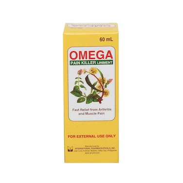 - Omega Pain Killer is a liniment that gives fast and lasting relief from various body pains. It is helpful in soothing and easing tension, fatigue, and aching muscles. It also has an anti-itching effect that eases itching, thus preventing infection from insect bites and scratches.