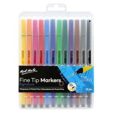 Signature fine tip markers have a 0.4mm (0.02in) point for beautiful crisp and clean lines. A must for any artist creating drawings, technical work or illustrations. They can also be used for colouring small detailed areas. The 12 colours are bright, quick flowing and fast drying