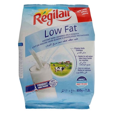 - The Regilait Low Fat Milk Powder is prepared from the cow's pasteurized milk. This powder is rich in protein, Vitamins B1, B2, B9, and B12. It can be used in the preparation of confectioneries and other delicacies.