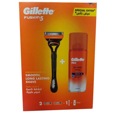 Gillette Fusion 5 Smooth Long Lasting Shave + Icy Cool Menthol Shave Gel 75ml