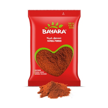 • The Bayara Paprika Powder 200g is a classic addition to deviled eggs, baked potatoes, and pasta salads. This paprika powder brings a vivid red color and quiet warmth to your dishes.