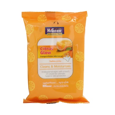 HiGeen Antibacterial Wipes, Orange & Butter Milk 15's