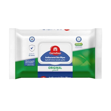 Maf Carrefour Antibacterial Skin Care Wipes Original White 80 Wipes