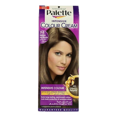 • Whether you want to change your hair color permanently or try out a new look, Schwarzkopf Palette Medium Ash Blonde Intensive Colour Cream is an ideal solution. Schwarzkopf Palette offers you an intensive and long-lasting color cream. It also makes your hair stronger, smoother, and glossier.