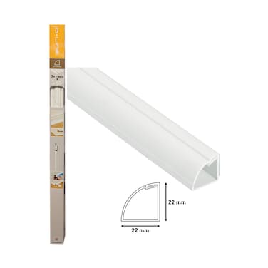 Easy to install, looks great! Self-adhesive, simply peel & stick to skirting Clip-Over or Smooth-Fit corners eliminate the need to mitre-cut. A smart alternative to traditional floor trims. Shock-absorbing hinge effect. Fully safety tested and certified. Half circle 22 x 22mm profile covers expansion gaps between floors and skirting, while providing an easy-to-use cable duct around floor perimeters. The 22 x 22mm (W x H) dimensions scale well to blend with popular skirting boards, while providing capacity for cable bending radii around corners. Traditional floor trim is usually nailed, and requires perfect measuring of lengths before corners can be mitre-cut at 45º angles. By contrast D-Line half circle can simply peel-and-stick to skirting, while the Clip-Over corner-bends save any need for precise measuring and can cover oblique cuts. Compared to regular floor trim, D-Line features combine to enable approximately 50% quicker installations – and then it’s easy to add or remove cables!