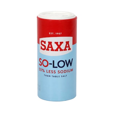 - A fine flowing full-flavour lower sodium salt which contains half the sodium of standard salt, so you can cut down on the sodium in your diet without cutting down on taste. It comes with 50% less sodium than table salt and is suitable for vegetarians & vegans.